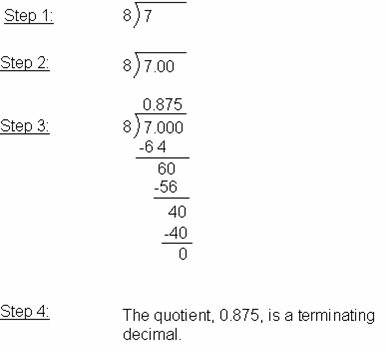 - Write a decimal point and several zeroes after the numerator (dividend).