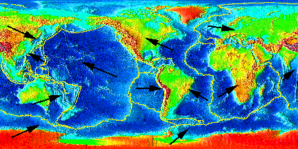 The realization that the Earth's crust is made up of plates that move around (plate tectonics) has revolutionized the scientific study of Geology. It is a unifying idea that explains the processes that create many of the Earth's features. In this exercise you will study the basics of plate tectonics. | ||||||||||||||||||||||||||||||||||||||||||||||||||||